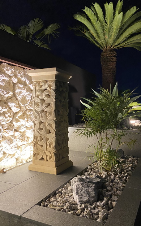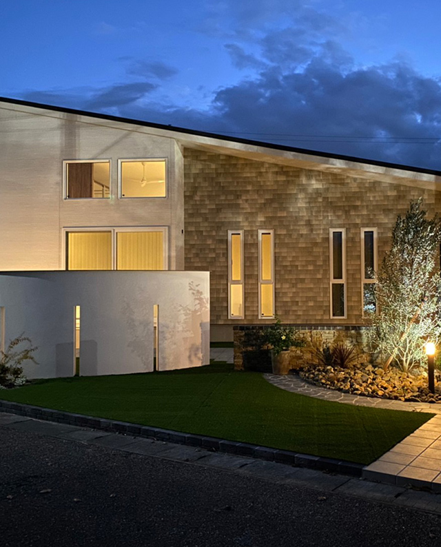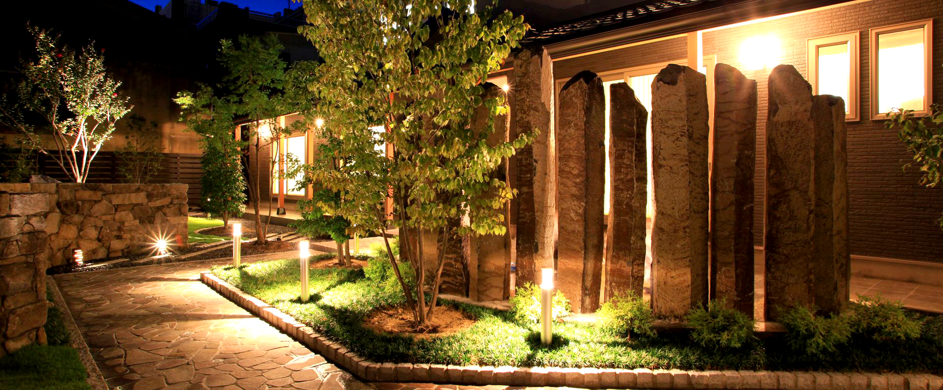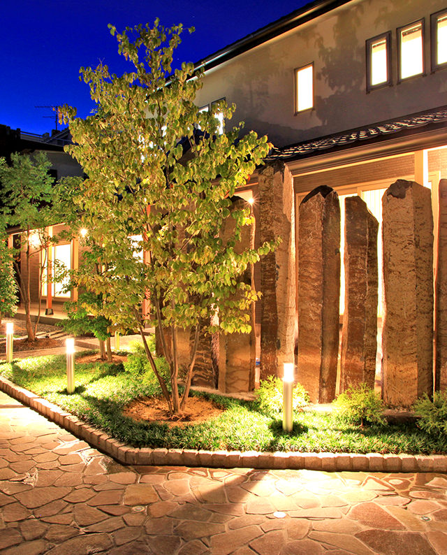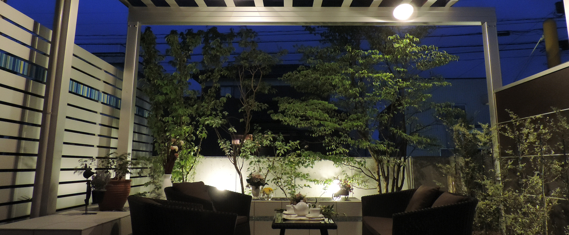 昼間だけではなく 夜も楽しんで頂けるよう得意としているライティングも素敵にご提案