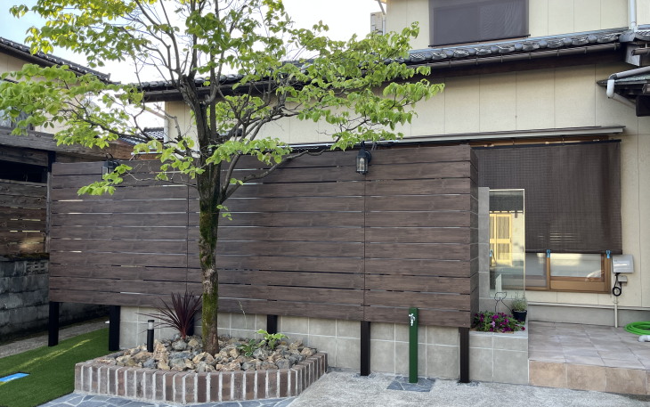 お庭のリフォームのご依頼です。シンボルツリーになるハナミズキのみを残し