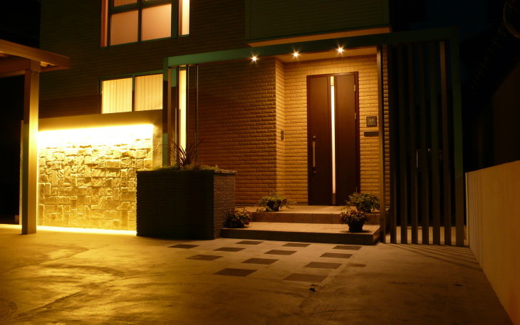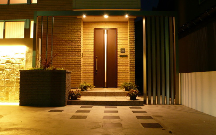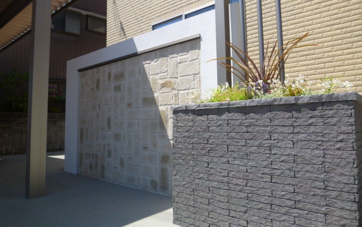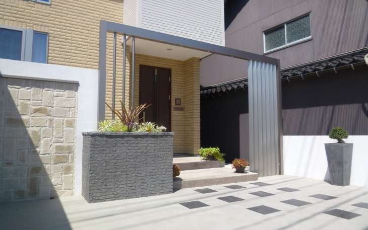 花壇、フラワーポット、床面のポイントタイル、そしてプラスGのフレームのグレー色を入れてシャープさをだしました。
