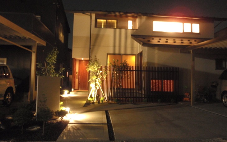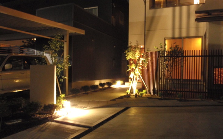 LEDライトを3か所使用しアプローチを照らしてくれています