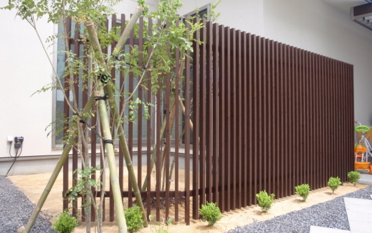 ご希望は和風!タカショーさんの千本格子をお勧めしたところ気に入って頂き、柱と柱の隙間を5㎝の特注にして作成しました