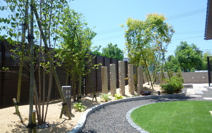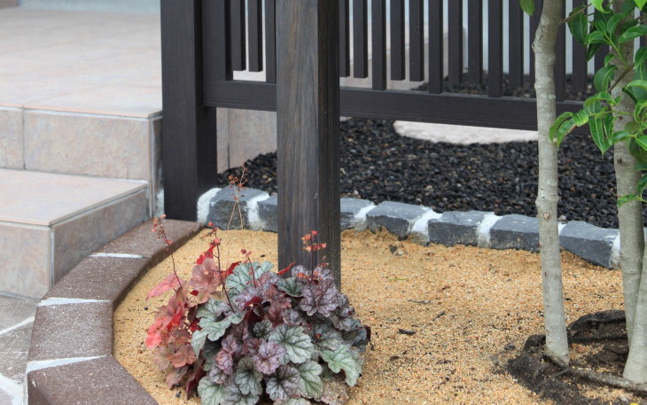 工事は昨年末に境界まわり、正面を。今年春にお庭の工事をさせて頂きました。