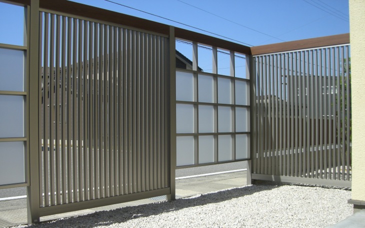 「+G」は縦格子とマス格子のパネルタイプで交互にいれて単調にならない様に工夫しました。高さがあるので、しっかり目隠しと庭内にもう一つの空間が生まれます。