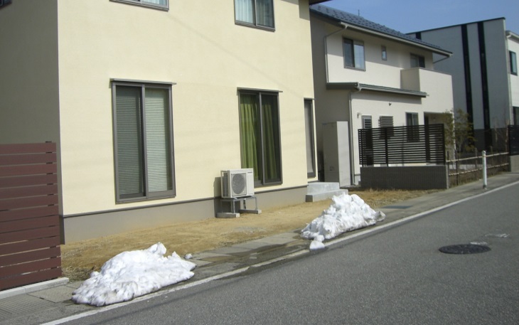 K様邸は正面・裏側共道路の”両面道路”のお敷地です。南側のリビング・和室前も道路に面している為カーテンが開けられないとの事。