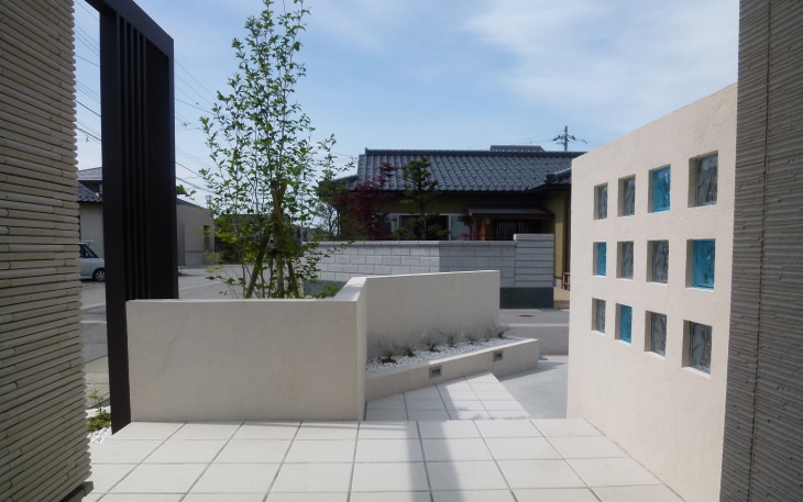 アプローチはお客様用と駐車スペースからお家に入る部分の2か所から出入りできるようになっています