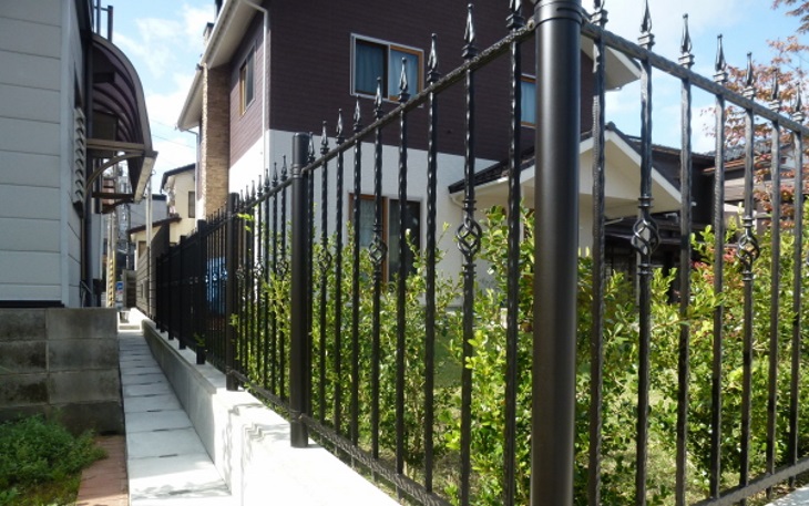 お庭、アプローチがある正面はアルミ鋳物フェンスLIXIL『ユーフォスフェンスC型H1.0M』