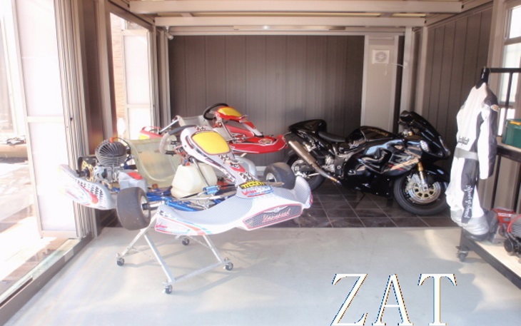 K様はご主人が趣味にされているバイクやカートを収納する為のスペースに