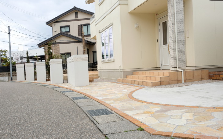 天然石調に作られたユニソンの『アッピア』を全体に敷きました