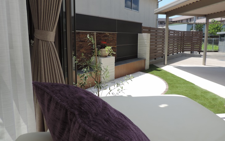 ガーデンルームから見えるフェンス部には飾り塀を設けて眺めれるように・・・