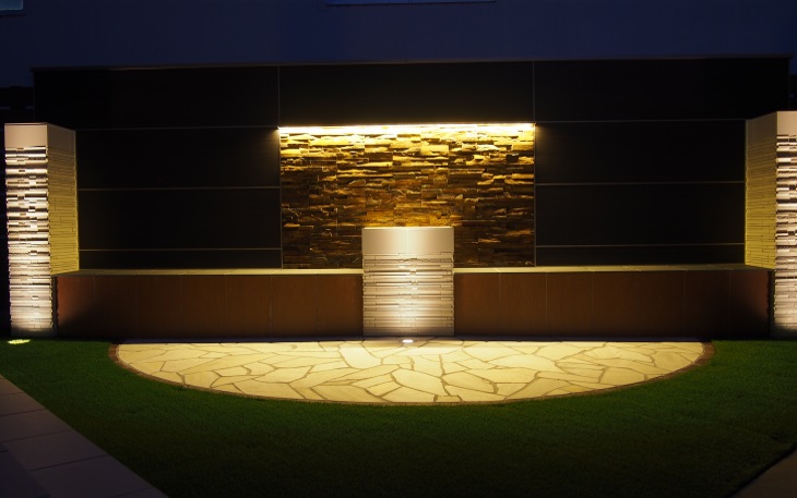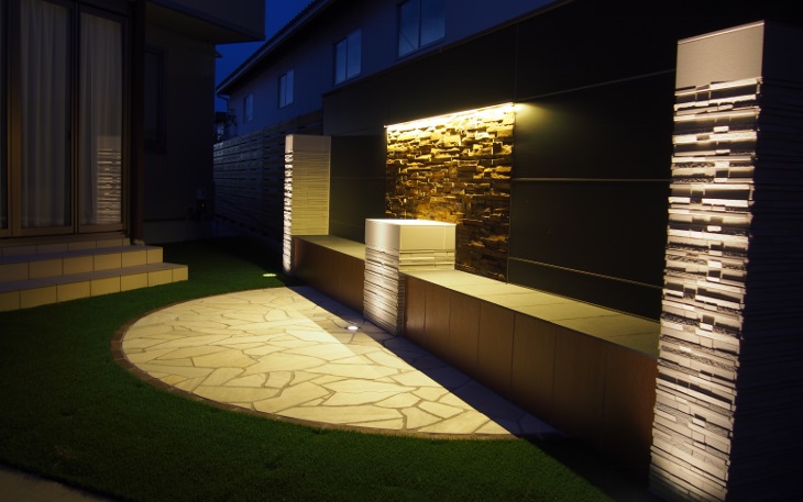 使用したのはタカショーのエバーアートボードとユニソンのパイルストーン。