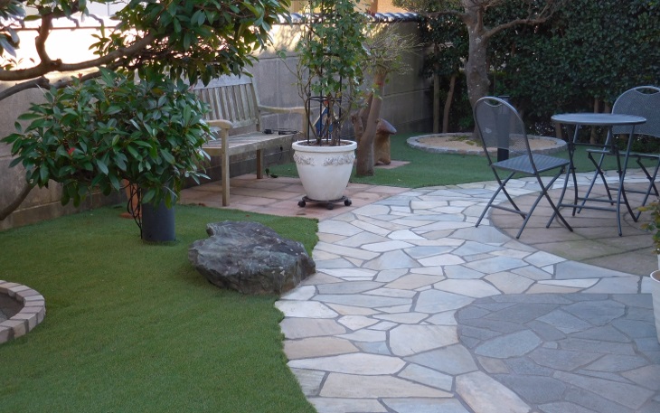 思い切って土の部分を全て人工芝でご提案