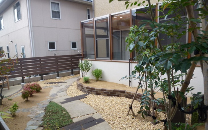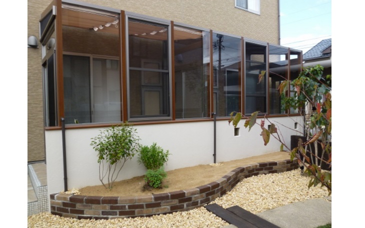 O様からは、TOEXココマのガーデンルーム腰壁タイプを取り入れた大きなリガーデンのご依頼です